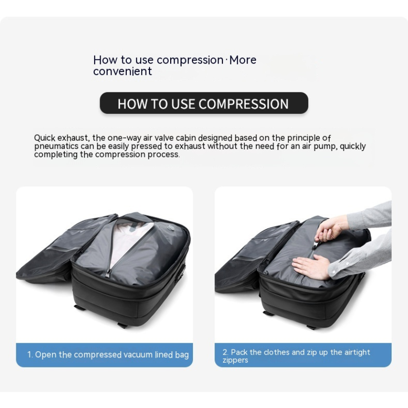 Expandable vacuum compression backpack.