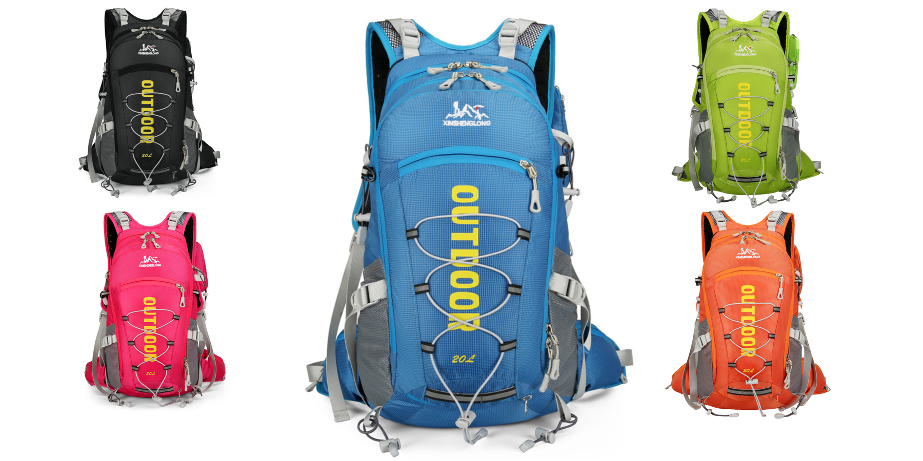 A lightweight, water-resistant multi-sport backpack with padded straps and front elastic cord storage.
