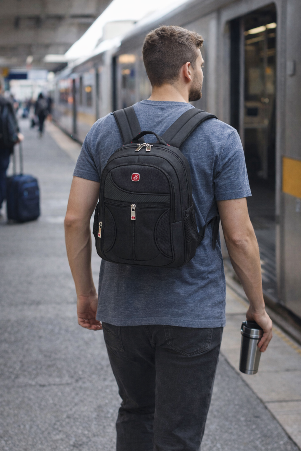 A clean, durable everyday backpack designed for work, commuting, and travel — with a structured 3D shape, strong double straps, and a comfortable soft handle.