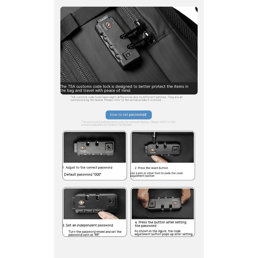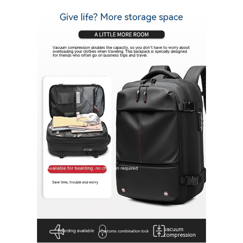 Built for business travel, commuting, and long trips, this backpack combines a vacuum compression / expandable design, waterproof wear-resistant Oxford cloth, anti-theft storage, and a laptop-ready interior — all wrapped in a clean modern business style.